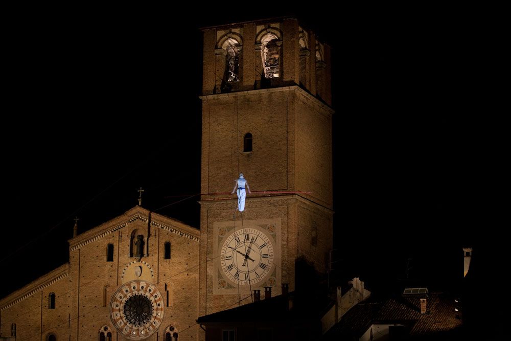 Io non amo il rischio, lo scelgo: il rischio è una categoria esistenziale, dal momento in cui esistiamo corriamo il rischio di non esistere più. Possiamo fare finta che non sia così, pensare che ogni rischio sia controllabile o azzerabile, e vivere un’esistenza non autentica oppure sceglierlo e vivere anche questo aspetto del nostro essere. Sul cavo io trovo una via per l’assoluto, prima di salirci lascio alle mie spalle il mio passato, il mio futuro, che mi determinano nel mio aspetto relativo e vivendo il presente accetto di perdermi nel vuoto. A volte capita che in quel vuoto incontri un momento di equilibrio, un momento di perfezione.